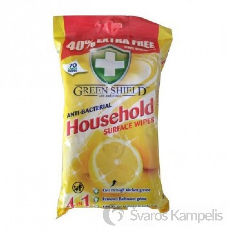 GREEN SHIELD Antibakterinės buitinių paviršių servetėlės , 70 vnt.