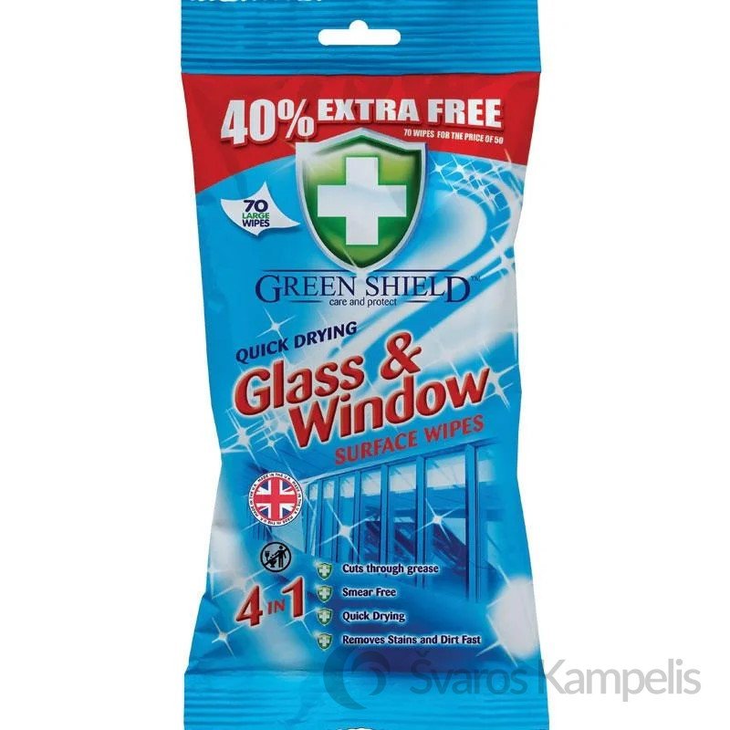 – Greitai šalina nešvarumus ir dėmes nuo stiklinių paviršių ir langų.