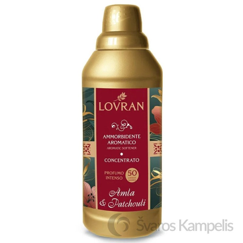 LOVRAN Ammorbidente Aromatico Concentrato Amla & Patchouli / Koncentruotas audinių minkštiklis su amlos ir pačiulių kvapu Koncentruota ir kreminė audinių minkštiklio formulė puikiai suminkština pluoštus ir sumažina mineralų nuosėdas jų viduje, palengvina lyginimą ir užtikrina išskirtinį minkštumą. Malonus Amla ir Patchouli audinių minkštiklio kvapas išliks ant jūsų drabužių ilgai.