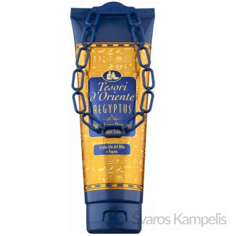 Itališka dušo želė! Prekės ženklas Tesori yra turtingas įvairių rūšių unikalios kosmetikos moterims ir vyrams. Siekiant užtikrinti geriausią komfortą ir maudymosi patirtį, gaminiai gaminami iš geriausių, atrinktų ingredientų. Dušo želė dėl savo kreminės konsistencijos giliai drėkina ir efektyviai valo kūną. Miros: palieka subtilų miros kvapą. Miško ritualas: baltųjų vandens lelijų kvapas su citrusiniu medžiu hinoki medienos dvelksmu Aegyptus: naujasis mėlynosios Nilo lelijos kvapas. Talpa: 250ml